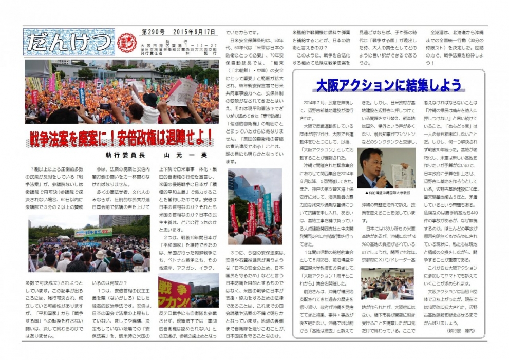 大阪支部はこれからも戦争への道に向かう政府に断固反対し続けて行きます!