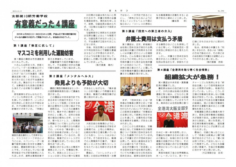 大阪支部の新加入組合員を対象とした「団結学校」が6月28日、大阪港湾労働者第1福祉センターにて、35名の参加で開催されました。詳細は機関紙「だんけつ」288号をご覧ください。