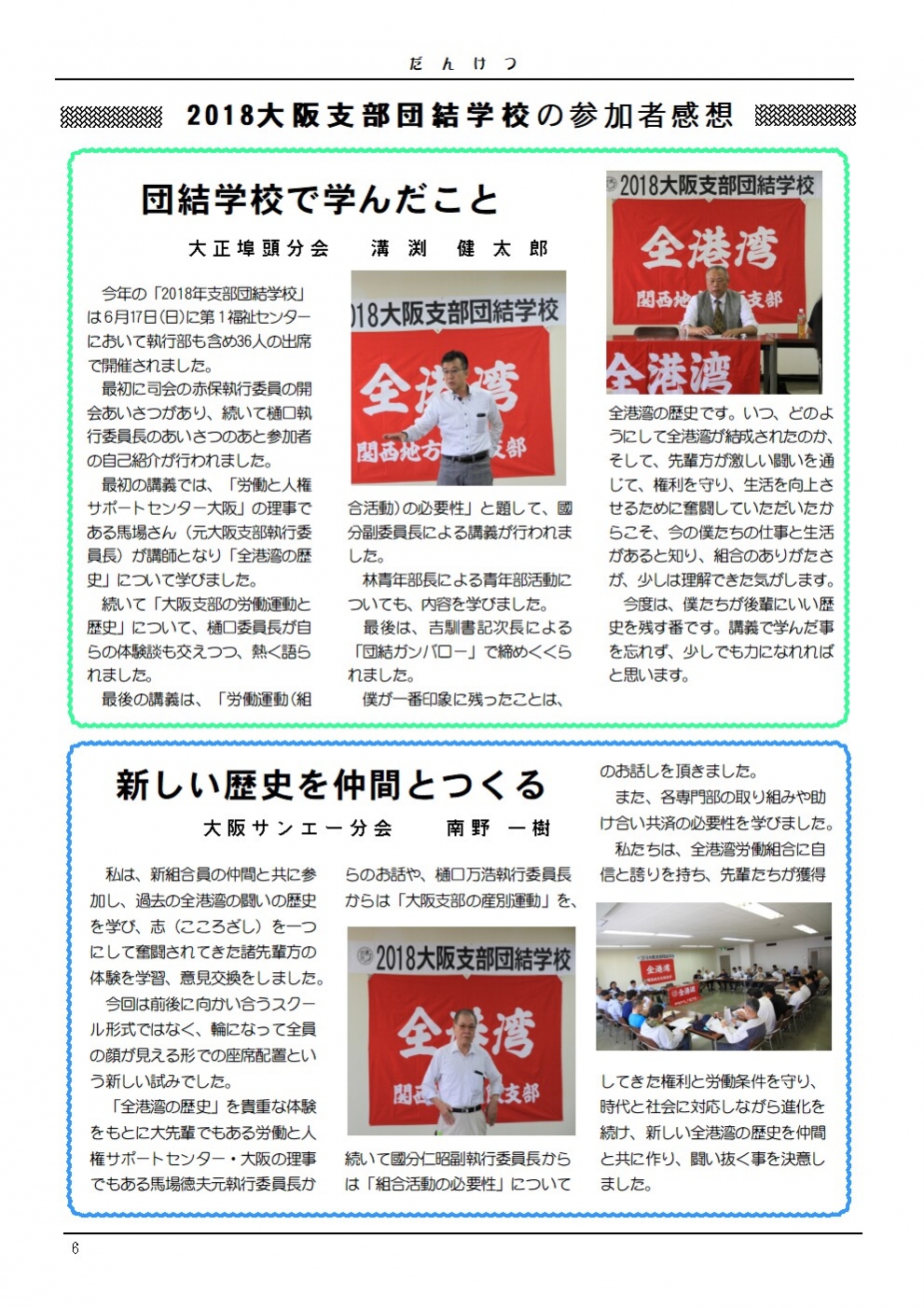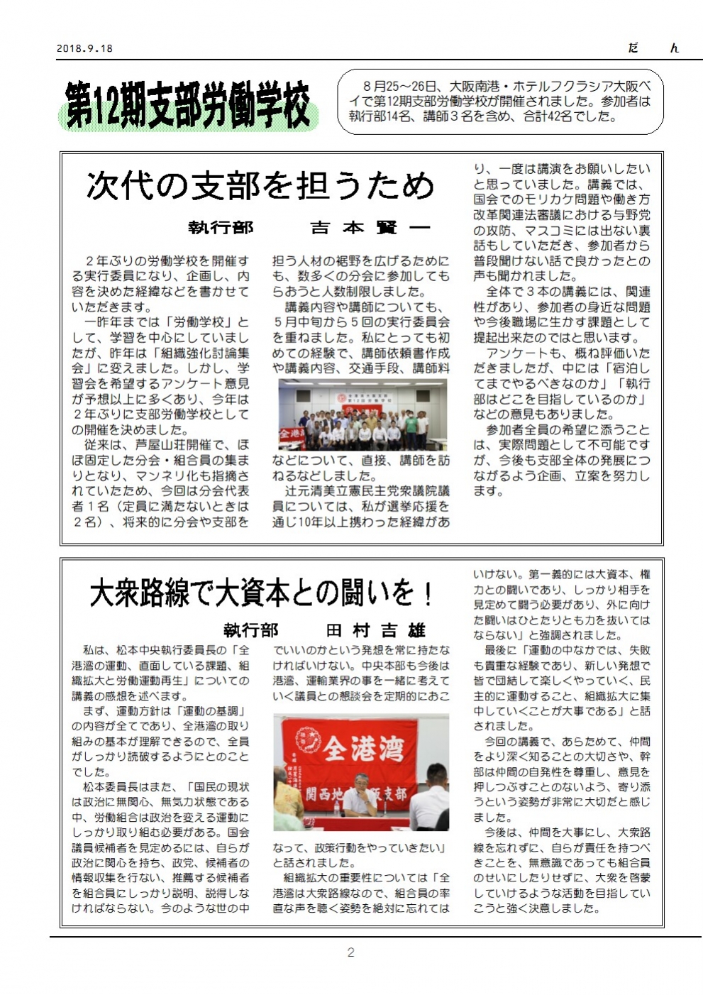 2018年春闘を大阪支部、分会一体となり、団結してたたかい抜く決意を確認し合う2日間となりました。