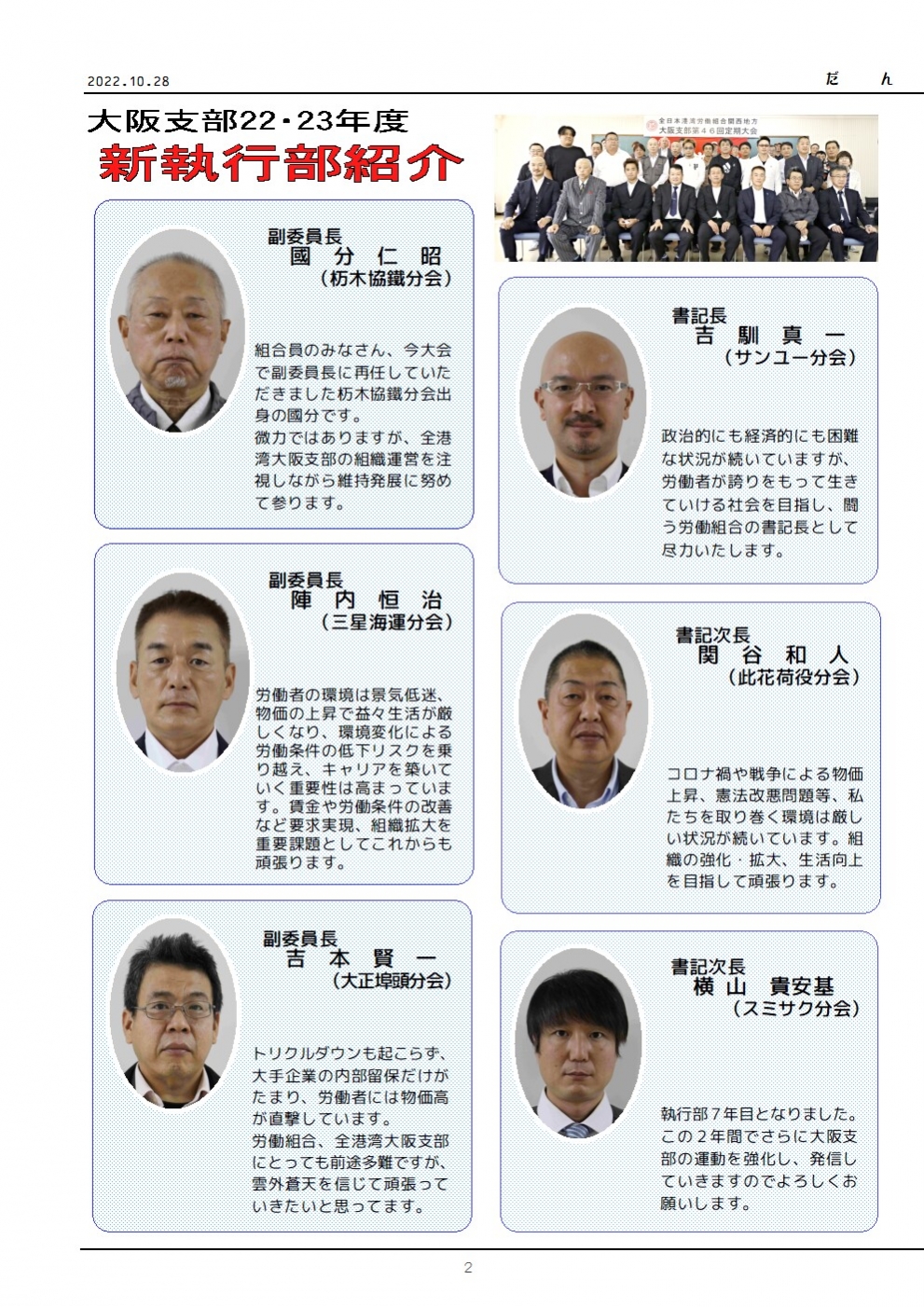 1月14.15日ホテルクライトン新大阪において「全港湾大阪支部2023年春闘討論集会」を松永中央書記長を来賓に迎え開催しました。